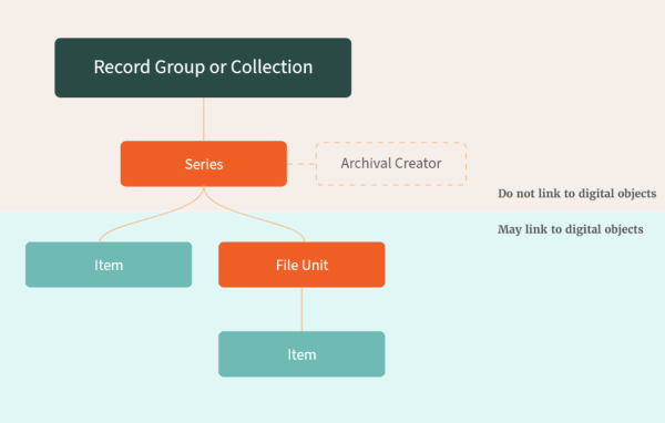 · 민간기관(Civilian agency) 종이기록물 · 제 1차 세계대전부터의 육군(Army) 기록물 · 제 1차 세계대전부터의 해군(Navy) 기록물 · 스틸 사진 기록물 · 전자기록물 · 지도 및 건축설계도 기록물 · 닉슨 대통령 자료 · 동영상 사운드 및 비디오 기록물 · F 존 케네디 암살 기록물 콜렉션 · 베를린 문서 센터 마이크로필름 |