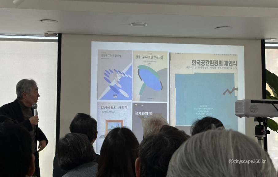 다음은 조순시정 서울시를 나와 서울시립대로 간 이야기로 이어졌다. 다큐에 나오셨던 장면도 살짝 나오고, 사회학, 공간환경, 이런 분야의 공부를 열심히 하시던 시기라고 소개하셨다. 사적영역과 공적영역이 서로 어떻게 유지될 수 있을까가 화두였다고 한다.
