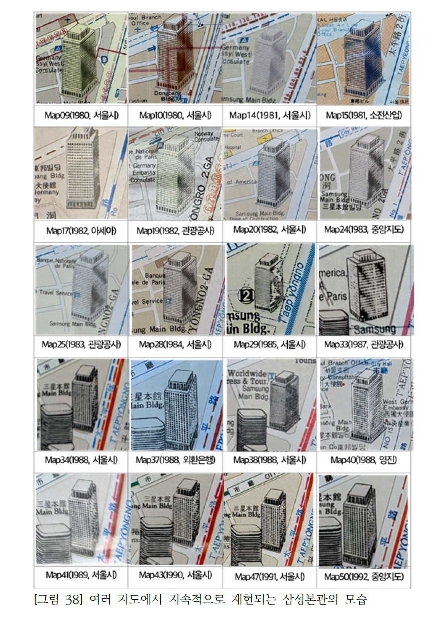 관광지도를 보기 시작했을 땐, 원래도 관광지도에 관심이 있긴 했지만-(나는 명동에있는 관광정보센터에서 주기적으로 서울관광지도를 가져오던 사람이다..) 관광지도가 이렇게 많을지 몰랐다. 게다가 일반도에 대한 잔상이 남아있는 상태에서, 시간에 쫓기며 빠르게 관광지도를 넘기다 보니 두 가지가 크게 눈에 들어왔다. 상세도의 변화(이름, 영역, 배치)와 3D 입체로 그려진 건물들. 경복궁이나 공원같은 관광지 말고, 이상하리만치 많은 업무용 건물들. 이상하다. 이 변화들은 뭘까 궁금했지만, 궁금함과 찍어둔 사진들을 안고 서울로 돌아왔다.